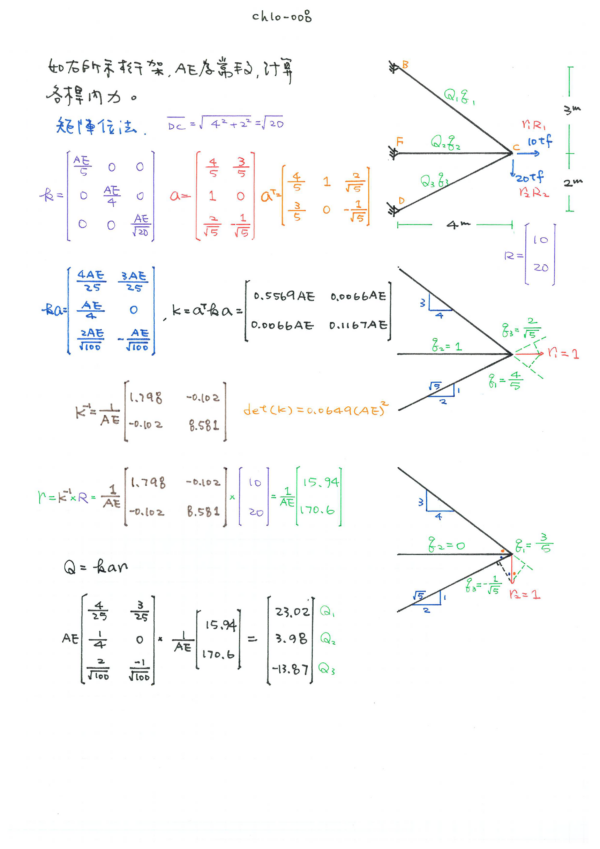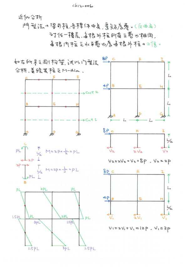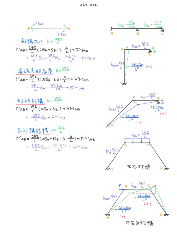 下冊:ch8傾角變位法、ch9彎矩分配法、ch10結構矩陣位法、ch11諧和變形分